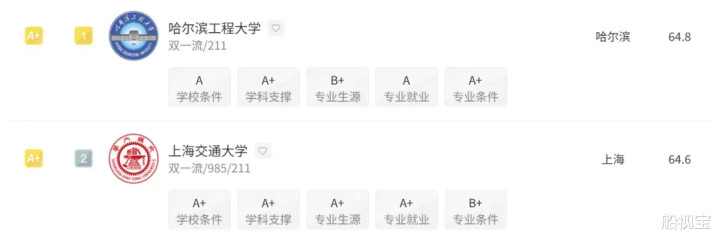 天津大学和西北工业大学的“船舶与海洋工程”专科取得“A”,分列第三和第四。