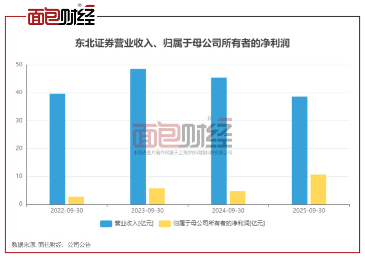 根据三季报,东北证券2025年前三季度实现收入38.61亿元,同比增加38.83%;归母净利润10.67亿元,同比增加125.21%。