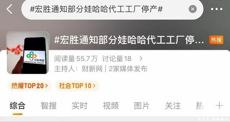 3月27日,#宏胜见知部分娃哈哈代工工场停工# 话题登上微博热搜。