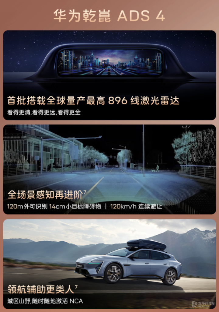 4、提拔驾驶:搭载华为新一代896线激光雷达,合作鸿蒙座舱5.0与MOLA大模子,杀青全场景高阶智能驾驶。