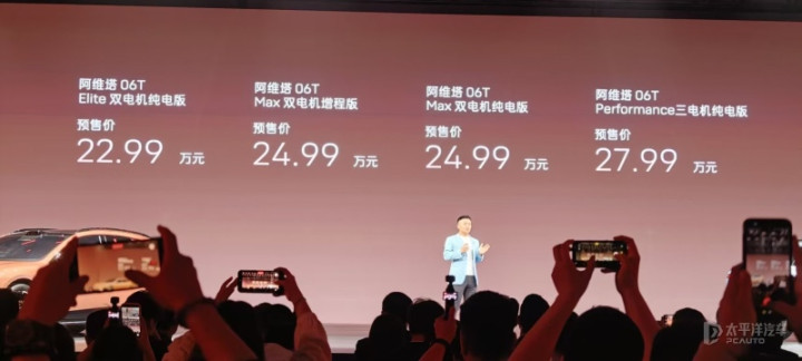 4月8日,阿维塔旗下全新中型车—阿维塔06T慎重开启预售,新车共推出4款车型,预售区间为22.99-27.99万元。