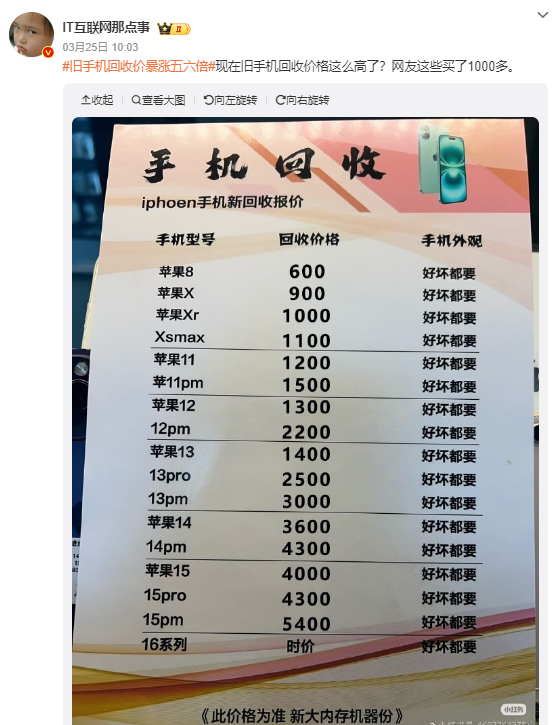 少有东谈主知,这波废旧手机加价潮其实从2025年国庆期间起就有解析升温,到咫尺举座价钱已涨至三倍傍边。