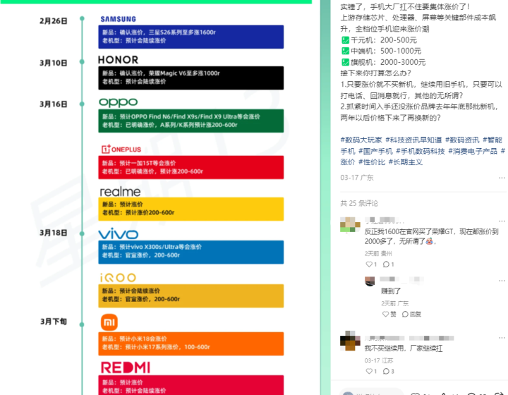 阔绰者们对此亦然磋商纷纭,正本计较换新机的他们,面临各大品牌的接连加价,不得不重新谋划我方的购买计较。不少东谈主初始重新疑望我方的换机计较,有的采取暂时甩掉,恭候价钱回落能够商场出现新的优惠行为;有的则初始将观点转向性价比更高的中低端机型,能够计议购买二手手机作为过渡。